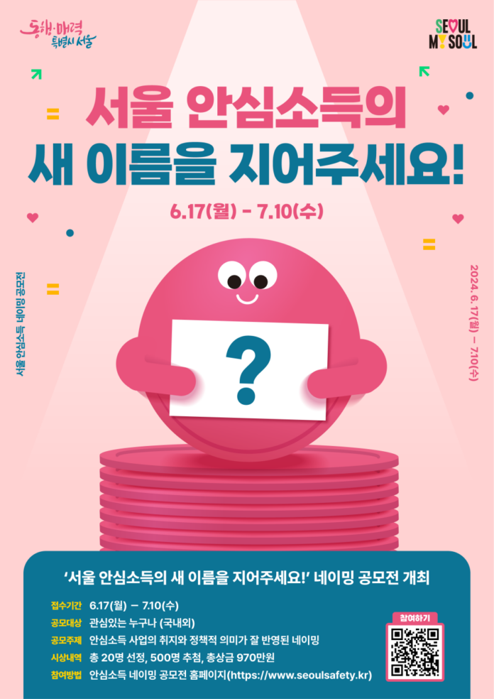 ‘서울 안심소득 새이름을 지어주세요!’…시민이 뽑는 공모전 개최